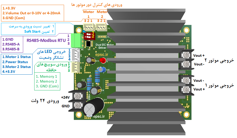 آموزش و راهنمای استفاده از درایور موتور DC-24V-10A-Double حافظه دار مدل EP4108