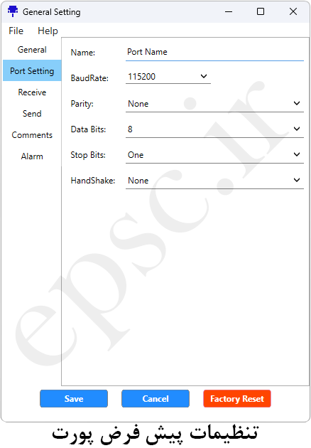 راهنما و توضیحات نرم افزار EPSC Serial Port Monitor